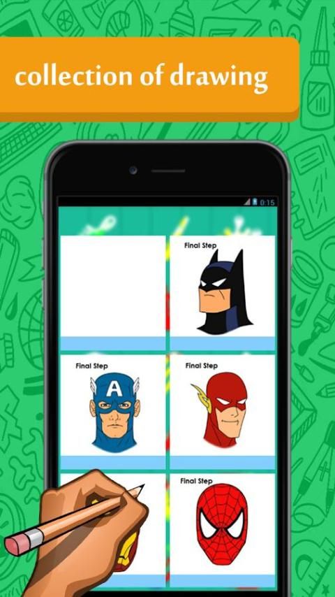 Superman, Batman, Wonder Woman, Flash, Green Lantern, Aquaman, Mars Manhunter, Hawkgirl, Captain Marvel dan lebih Cukup pilih karakter anime Anda ingin menarik dan mulai mengikuti langkah demi langkah tutorial untuk mendapatkan salinan dari hasil imbang Anda di Anda telepon.