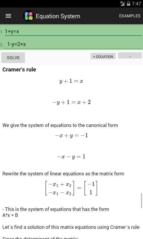 Solusi simbolik sistem persamaan, untuk sistem persamaan linear dengan solusi rinci.