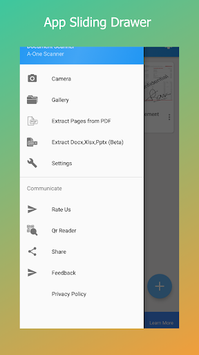 Aplikasi PDF Scanner di mana Anda dapat mengonversi halaman PDF ke gambar atau menggabungkan beberapa PDF, dan berbagi sebagai file PDF tunggal.