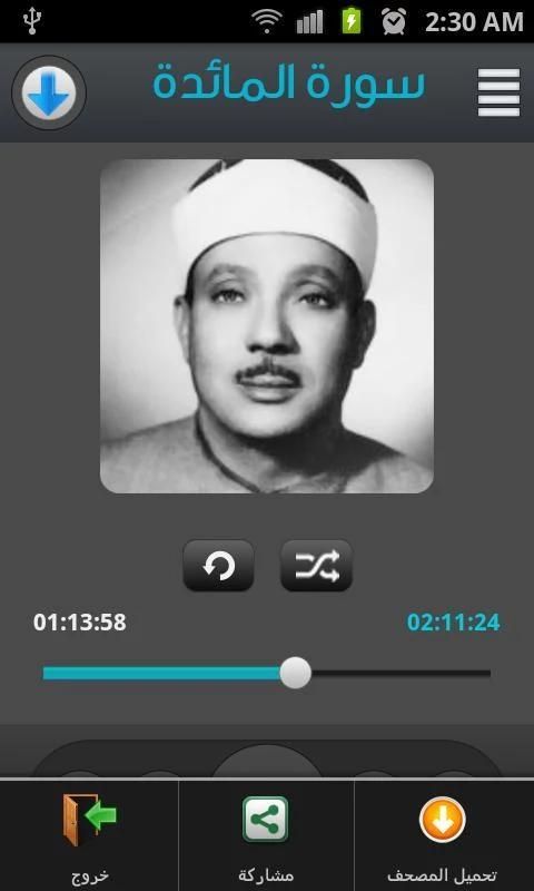 تحميل السور على الجهاز.للاستماع للتلاوة دون الاتصال بالانترنت