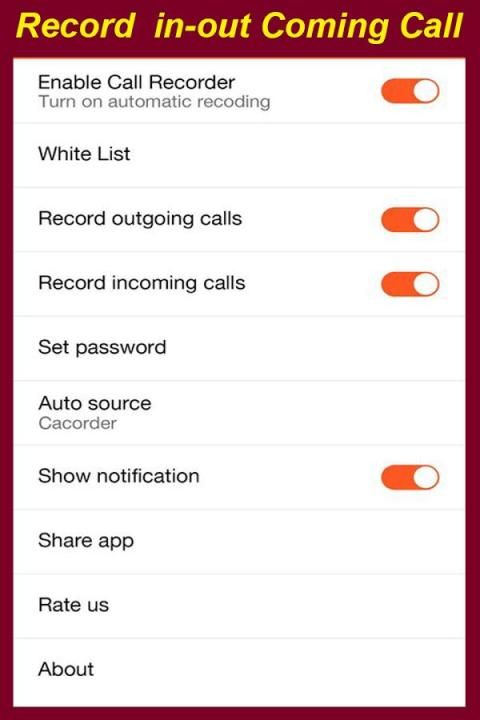 perekam panggilan otomatic dan data membersihkan rekaman telepon apapun panggilan yang Anda inginkan & memilih mana yang Anda ingin menyimpan. Anda dapat mengatur yang panggilan dicatat dan yang diabaikan