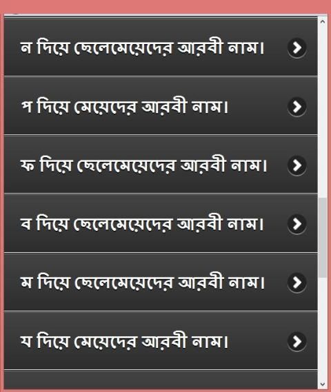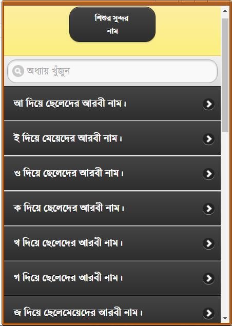 Aplikasi ini diatur sedikit berbeda. Banyak orang ingin menyimpan nama selaras dengan namanya sendiri. Semua orang ingin memiliki nama atau nama ayah untuk tetap sejalan dengan nama anak. Aplikasi ini sangat mudah untuk menemukan bahwa nama mereka disusun menurut abjad.