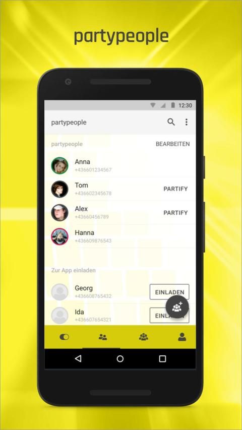 Sieh schnell auf einen Blick, wer deiner Freunde ebenfalls Lust hat, etwas zu unternehmen und werde automatisch benachrichtigt, sobald von dir festgelegte Favoriten in partymodeON gehen. Oder erfrage den aktuellen Status deiner partypeople mittels partify-Funktion.