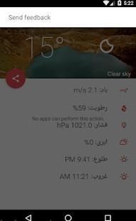 Hal ini juga menampilkan suhu dan tekanan dari (kondisi cuaca di semua negara di dunia) dari kota Iran.