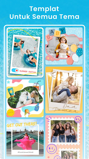- Eksperimen dengan berbagai latar belakang dan stiker untuk meningkatkan kolase gambar Anda.
