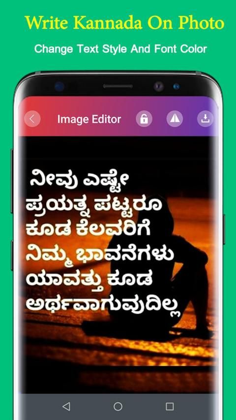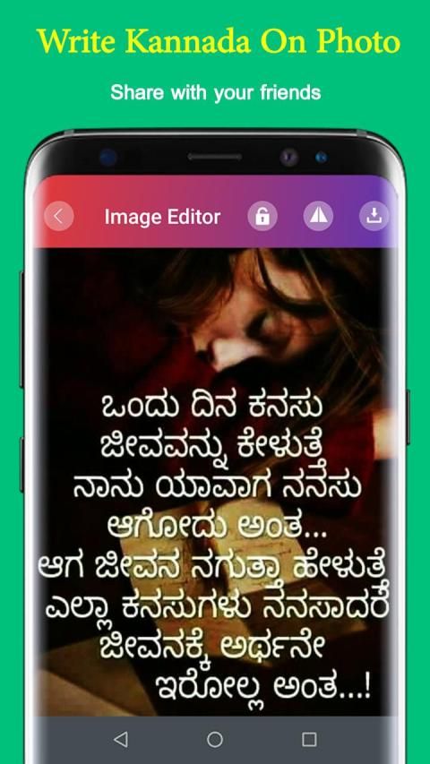 Tulis emosi dan perasaan Anda dalam kannada bahasa Anda pada gambar Anda dan bagikan foto kannada Anda dengan teman dekat dan keluarga Anda.