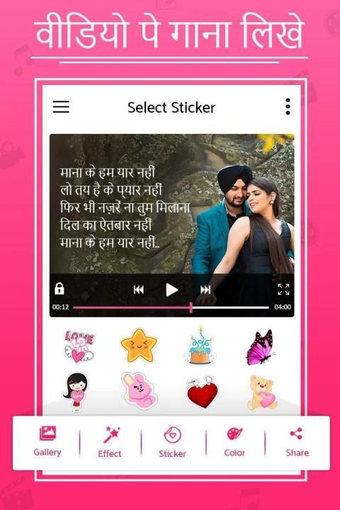 Ab asan hain video pe naam likhna. Write your Song or friends name easily with full and easy Hindi keyboard.There are hundreds of stickers in various categories that you can use to make your video beautiful. There are many fonts that you can use to make your writing stylish.
