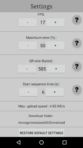 • Transmission settings affects only QR stream producer in upload mode - receiver in download mode only fits to what it sees.