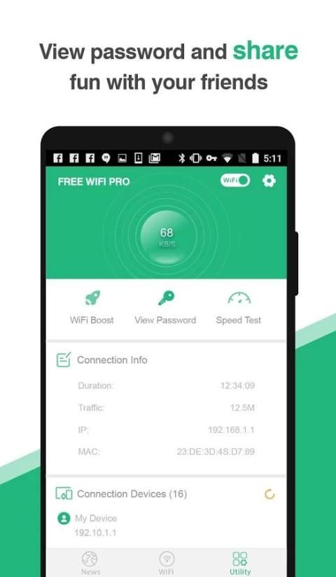 Hanya satu klik, menghubungkan WiFi dan berbagi sandi WiFi. "Gratis WiFi Pro" akan mendeteksi WiFi secara otomatis.