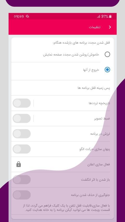 - دارای 3 حالت قفل - الگو،پین و سفارشی