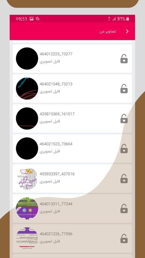 ** اگر برنامه را حذف و نصب مجدد کرده اید.در صفحه اول برروی قفل فایل لمس طولانی کنید تا اطلاعات مخفی بازگردانی شوند
