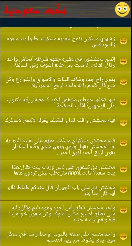 Jokes Arab Saudi adalah sebuah aplikasi yang berisi koleksi besar canda dan tawa Arab Saudi konyol dan dialek