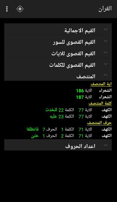 Cari Program statistik dan Al-Qur'an adalah aplikasi Android menyediakan teks lengkap membaca Al-Quran. Dengan bantuan pencarian aplikasi ini untuk teks tertentu dalam Al-Quran atau berada dalam Surat tertentu dan menawarkan jumlah numerik yang berbeda dari Quran dan pagar dan ayat.