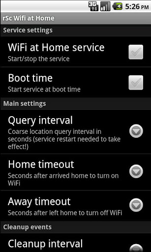 NOTE: this is the CDMA version for CDMA phones.wifi at Home provides a service which can turn off WiFi of your mobile phone when you leave home and turn it back on when you arrive back, this way it helps you saving battery power.You don39;t need GPS turned on, WiFi at Home keeps monitoring your location based on CDMA cell information Of course this information is coarse, it might cover an area up to 500 m2, so it will do the job when you go away for a longer distance.Application works by teaching, you can add cell information to the known location list, then WiFi at Home will recognize the event of leavingarriving to these set of locations and can do the action.Application39;s main screen is kind of monitor mode, you can walk around in your apartment to discover the cells.Please also note: cell informations in 2G and 3G networks probably differ, you need to teach both.Some special notes about permissions: Internet access is needed for the bug reporting component Wake lock is needed for the monitor screen its easier to check locations