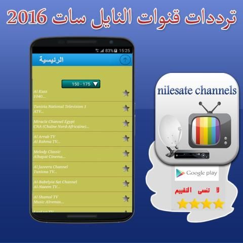 Aplikasi, yang menawarkan hari ini mencakup semua informasi untuk menonton saluran satelit Nilesat langsung seperti yang Anda lihat dari frekuensi saluran terenkripsi dan semua saluran televisi Mesir Nilesat. Program ini juga mencakup sebagian besar frekuensi baru 2016 saluran Arab, apakah film Olahraga Kitchen agama dan lain-lain.