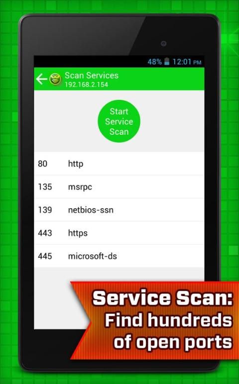 • Service Scan: Find hundreds of open ports in a few seconds.