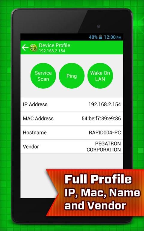 • profil lengkap Tampilan seperti nama perangkat, produsen, alamat IP dan alamat Mac