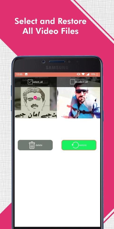 Easy and simple application for recovering and restoring the deleted video data from your android mobile device. Open the app scan the data, after scan is complete, select the videos that you want to recover and click on restore button. All the recover deleted videos saved again in gallery or your video player.