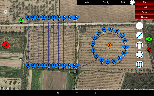 Cara cepat dan mudah untuk membuat misi waypoint dengan hanya mengklik dan menyeret koordinat di peta. Gambar garis jalur, lingkaran, persegi panjang dan kisi. (Ganda ganda dan grid vertikal dalam versi pro)