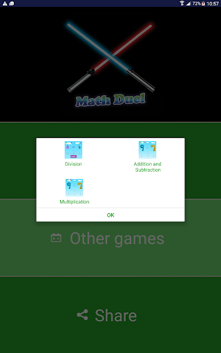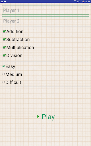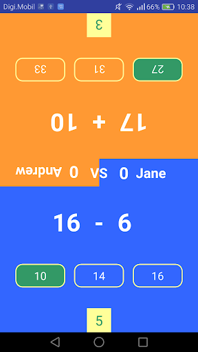 Test your math skills in a race against your friends! The screen is split in two thus very convenient for the duel games. All player has as much time as needed to answer the question, next operation is displayed only after both players choose an answer.
