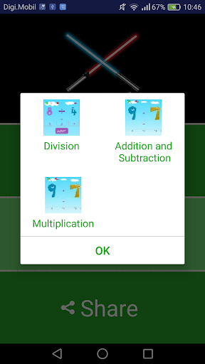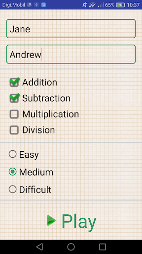 This game includes basic math operations from easy to hard and includes 3 levels: easy, medium and hard.