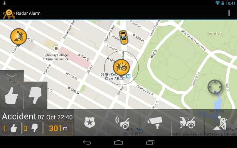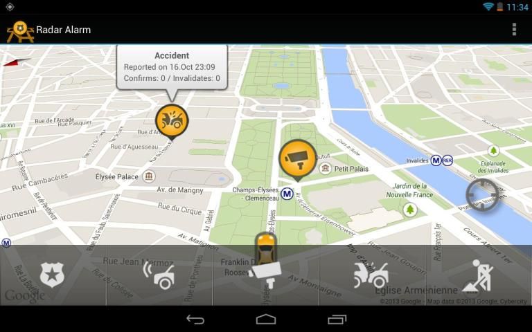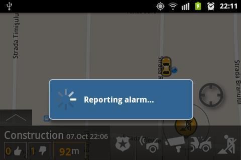 Cukup aktifkan aplikasi (dengan GPS diaktifkan dan konektivitas jaringan) dan jika Anda melihat "alarm jalan" laporan itu dengan satu klik, dan pembalap lain akan otomatis diberitahu oleh kehadirannya. Alarm ini secara otomatis dihapus setelah beberapa saat (polisi - 30 menit, radar atau kecelakaan - 1 jam, konstruksi - 7 hari, kamera kecepatan - 60 hari)
