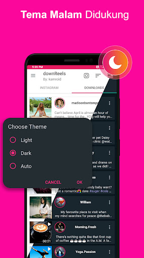 Mendukung Reels dan unduhan Stories