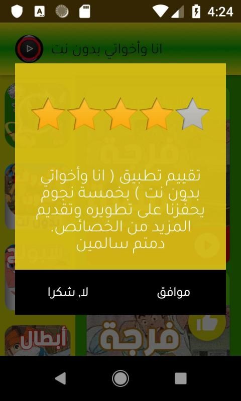 *بعد التقييم للتطبيق يمكننا ان نضيف لكم تطبيقات جديده ك افلام كرتون أنا وأخواتي بدون نت بدون نت بالعربي