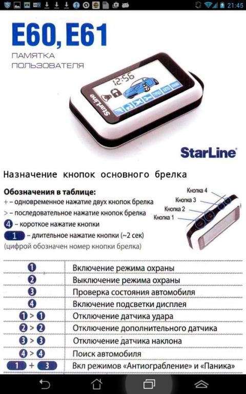 Hal ini mudah untuk memiliki di tangan jika Anda menyimpannya dalam versi kertas dari mobil, hanya dalam kasus download untuk smartphone Anda, dan (atau) tablet. Hal ini dapat membantu dalam keadaan darurat, jika Anda lupa cara mengaktifkan anti perampokan atau hilang Starline sinyal kunci.