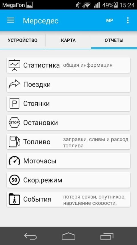 - Поездкам (индивидуальные маршруты движения, отражение трека на карте)