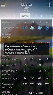Приложение представляет прогнозы погоды для каждого населённого пункта мира и данные наблюдений, выполненные на наземных метеостанциях.