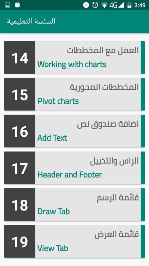 تطبيق يساعدك في تعلم برنامج الاكسل ويحتوي التطبيق سلسلة تعليمية مصورة متكاملة اضافة الى كتب تعليمة