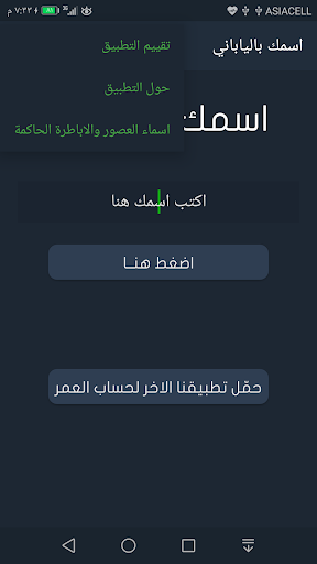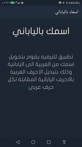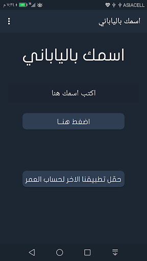 Terapkan untuk hiburan mengubah nama Anda dari bahasa Arab ke Jepang dengan mengubah karakter Arab dalam kerajinan Jepang yang sesuai dengan setiap huruf Arab. - Gaya gelap (mode malam).