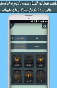 • التنبيه لاوقات الصلاة سواء باختيار اذان كامل او فقط بختيار اشعار ينبهك بوقت الصلاة
