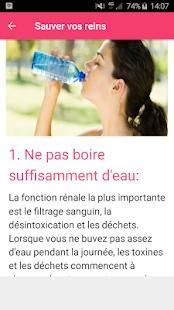 Dans cette application, nous donnerons une liste d'habitudes communes qui provoquent beaucoup de pression sur les reins et peuvent causer de graves dommages au fil du temps.