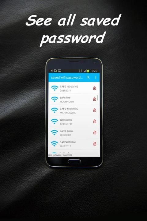 Disimpan WiFi aplikasi Password Viewer membantu Anda melihat semua jaringan WiFi Anda yang disimpan pada ponsel Anda dan Anda dapat melihat dan menyalin password yang jaringan langsung untuk berbagi dengan teman-teman Anda.