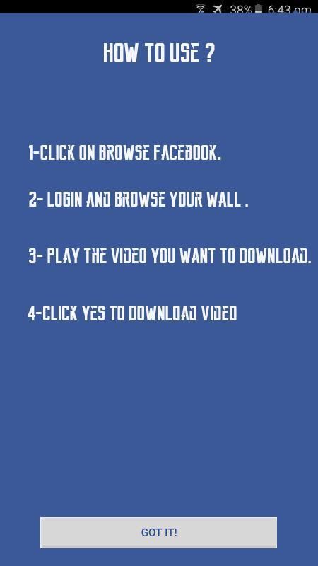 Sekarang download video dari fb & simpan ke perangkat Anda untuk menonton secara offline dan berbagi mereka kemudian dengan teman-teman Anda.
