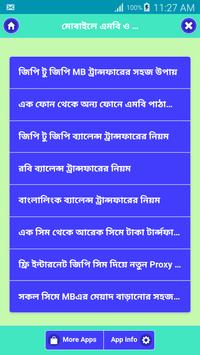 ব্যালেন্স ট্রান্সফার করার উপায় জানতে পারবেন আমাদের এই অ্যাপটির মাধ্যমে। আপনার এমবি বেশি থাকলে আপনি ফ্রি কল করতে পারবেন। সাথে আমাদের ফ্রি ইন্টারনেট ব্যবহার করার টিপস নিয়ে আরো অ্যাপ রয়েছে। এমবি বাড়রো খুবই সহজ যদি আপনি টিপস সমূহ জানেন। ফ্রি এমবি পান আর ইন্টারনেট ব্যবহার করেন ইচ্ছামত। সিম কোড যার মাধ্যমে আপনি আপনার পুরাতন সিমের নাম্বার জানতে পারবেন। সিম নাম্বার জানলে আপনার জন্য রিচার্জ করা সহজ হয়ে যাবে। সিমের মেগাবাইট বাড়ানোর টিপস ব্যালেন্স ট্রান্সফার করার উপায়