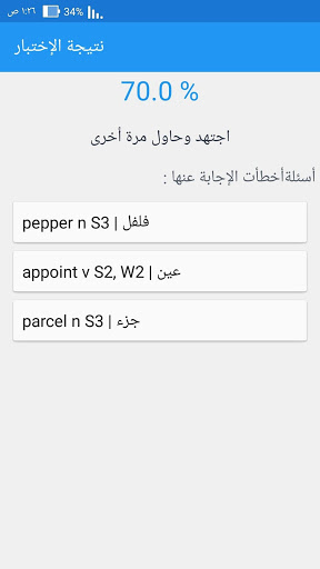 التطبيق يعرفك على الكلمات التي أخطأت في الاجابة عنها .