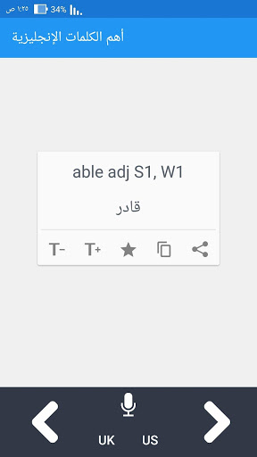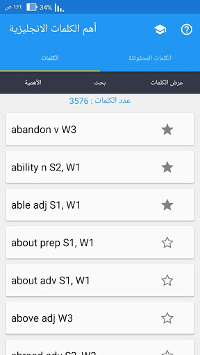 تطبيق أهم الكلمات الاانجليزية - مترجمة إلى العربية -