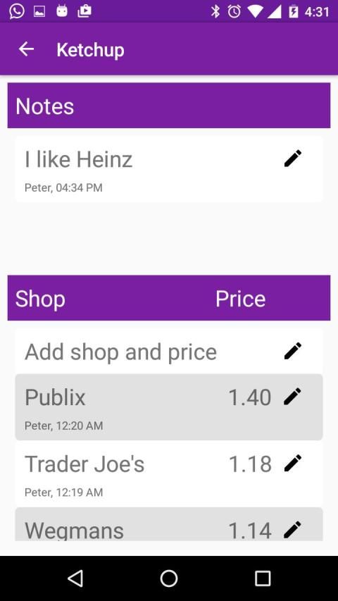 Anda dapat menulis catatan untuk produk dan menambahkan daftar toko dan harga untuk selalu tahu di mana untuk membeli lebih murah.