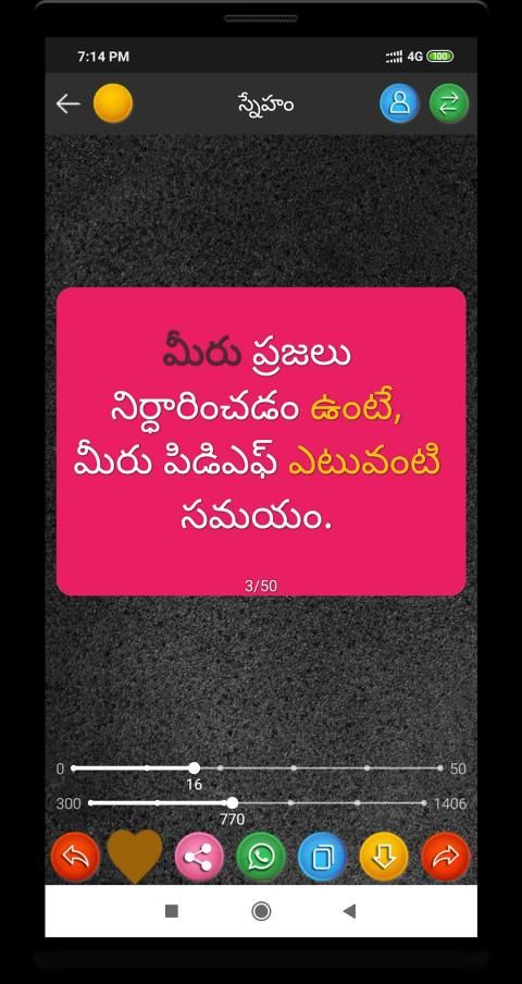 Telugu status , sms & quotes App cover almost all Telugu Status , Famous quotes Saying by legends and sms & Twenty different categories of best selected images with very easy sharing option.