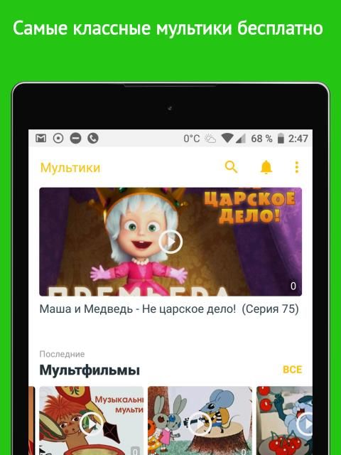 Мультики - это удобное приложение, созданное для просмотра мультфильмов для детей. На фоне других оно выделяется следующим: