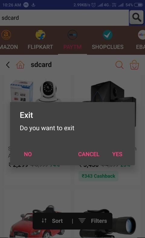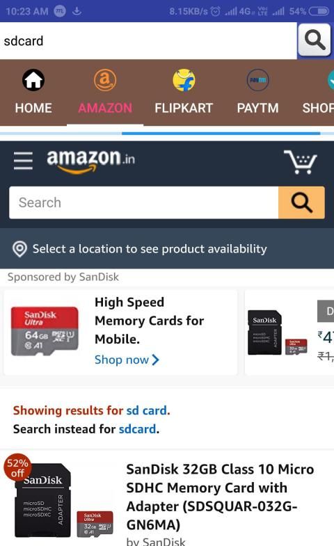 pencarian tunggal untuk setiap produk dan hasil di amazon, flipkart, paytm, snapdeal, dan shopcues di berbagai tab