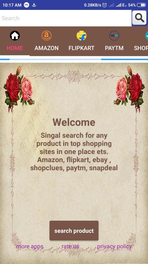 singal search for any product and result on amazon, flipkart, paytm, snapdeal, and shopcues in different tabs
