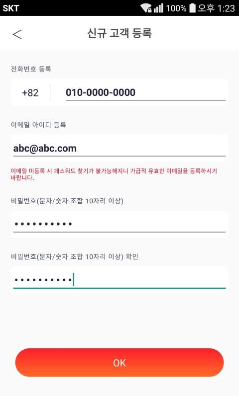 1. 전화번호 및 P/W를 등록하시고 로그인 해주세요.