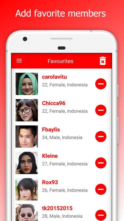 • Menyimpan daftar wanita Indonesia dan pria Indonesia favorit Anda.
