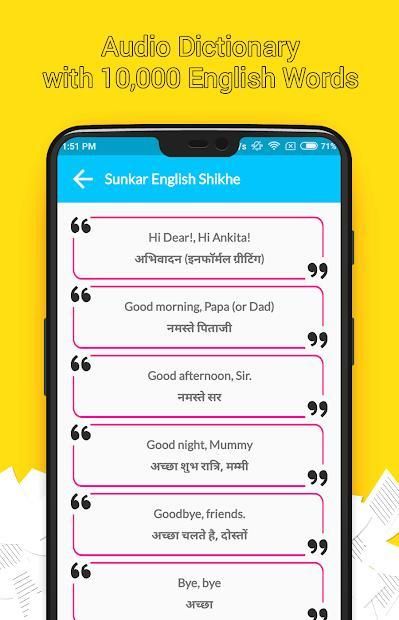 2. Learn To Speak English:- This Learn To Speak English App gives you detailed information about Salutation, Greeting and use of different to help you Learn To Speak English with easy. This feature all gives you meaning to common words that you can use daily.