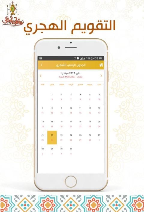 Kalender: menunjukkan Sejarah Islam dan peristiwa Islam sesuai dengan kalender dan fase yang berbeda dari bulan.