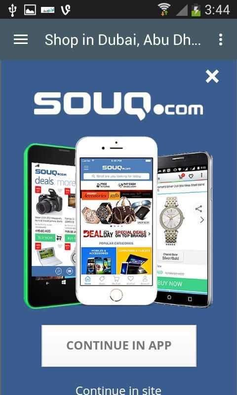Souq.com Free android app runs in your favorite language Arabic or English, allows you to browse and buy online in all shopping categories like: Mobile and Smartphone, tablets and iPad, Laptops, Original Perfumes, Digital camera, Original watches at a discount, Sporting goods, Fashion and Makeup, Shoes and Kitchen & Dining.